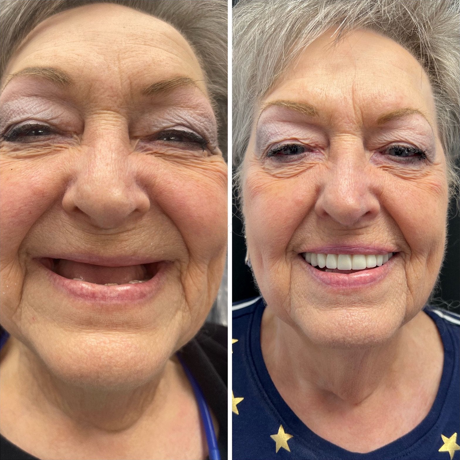 "I’ve always had a sweet tooth, and I’ll admit I wasn’t good at brushing regularly. Eventually, it caught up with me—my teeth decayed, and I developed gum disease. I started feeling embarrassed about my smile, especially when my friends teased me. Getting this denture set was the best decision I’ve made. It fits well and looks natural. I no longer feel insecure when I smile, and it’s been a huge confidence boost!" - Lillian Kilroy