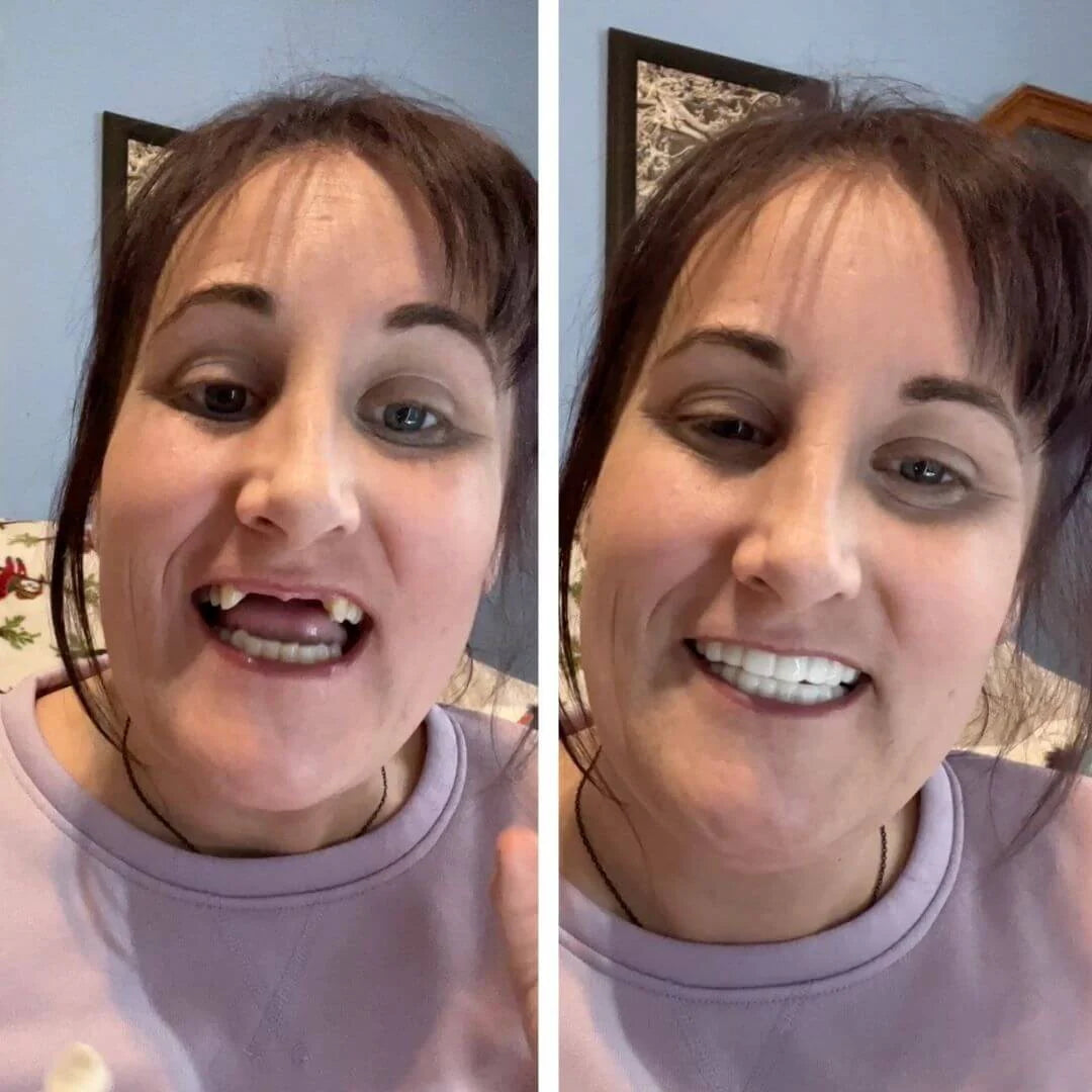 "As I got older and lost all my teeth, eating became a real struggle, and I felt self-conscious about my appearance. I couldn’t afford frequent dentist visits, so I decided to try this denture set. It was a huge relief! It’s affordable compared to regular dental costs, and now I can eat without discomfort. Plus, I feel much more confident with my smile. it’s been life-changing for me." - Elizabeth J. Andes