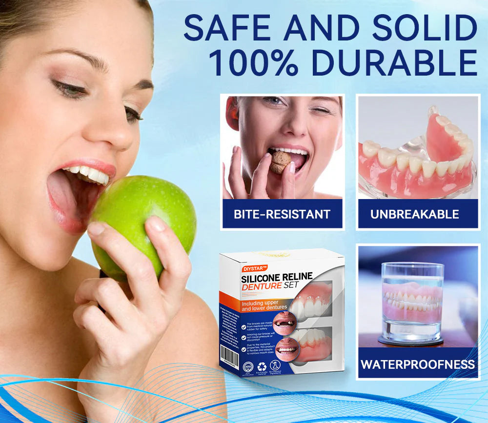 "I recently had a visit to my dentist, who recommended expensive teeth implants to fix my poorly fitting dentures. The cost was overwhelming, and I felt hopeless until I discovered the DIYSTAR™ 𝐒𝐢𝐥𝐢𝐜𝐨𝐧𝐞 𝐑𝐞𝐥𝐢𝐧𝐞 𝐃𝐞𝐧𝐭𝐮𝐫𝐞 𝐒𝐞𝐭. Using DIYSTAR™ 𝐒𝐢𝐥𝐢𝐜𝐨𝐧𝐞 𝐑𝐞𝐥𝐢𝐧𝐞 𝐃𝐞𝐧𝐭𝐮𝐫𝐞 𝐒𝐞𝐭 was the best decision I ever made! It was easy to use, and the results were phenomenal. This dentures fit perfectly, giving me the confidence to smile again without discomfort or insecurity. The snug, comfortable fit has eliminated the soreness I used to experience, and I can eat and speak with ease. Best of all, I achieved these amazing results at a fraction of the cost of implants. DIYSTAR™ has truly boosted my confidence and saved me from an expensive dental procedure. I highly recommend it to anyone facing similar challenges with their dentures!" - Maria Clarke