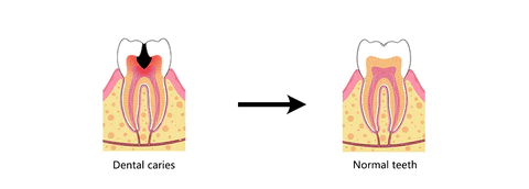 The formation of dental caries is due to the damage of tooth enamel by germs which could gradually spreads to the dentin and even pulp. This can lead to bad breath, tooth pain, brittle teeth, and tooth loss. When caries occurs, there will be a chain reaction in which normal teeth begin to be eroded as germs spread to surrounding teeth.